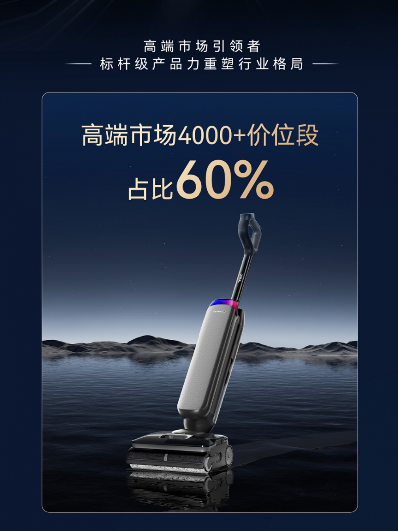 在国补政策加码、同时作为“自动上下水洗地机发明者*”,在4000元以上高端洗地机市场价位段,