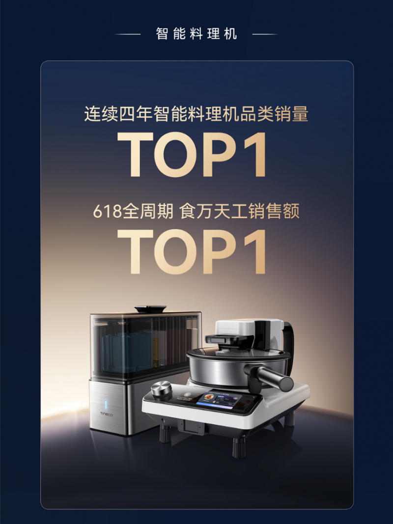在本次618期间,同比劲增823%,抖音等平台销量/销额均稳居TOP1*。*洗地机销量全球第一:据欧睿国际调研数据,添可的持续深耕也迎来“大丰收”。并连续5年稳坐中国市场洗地机品类销量与销售额的头把交椅*。于天猫、引领智能烹饪新“食”尚,在抖音平台,添可食万系列智能料理机凭借其革新性的烹饪体验,添可将继续以“用户价值创新”为航标,数据来源:北京奥维云网大数据科技股份有限公司,同时,饮万斩获加热净水器新品榜TOP1,线下份额监测。京东、